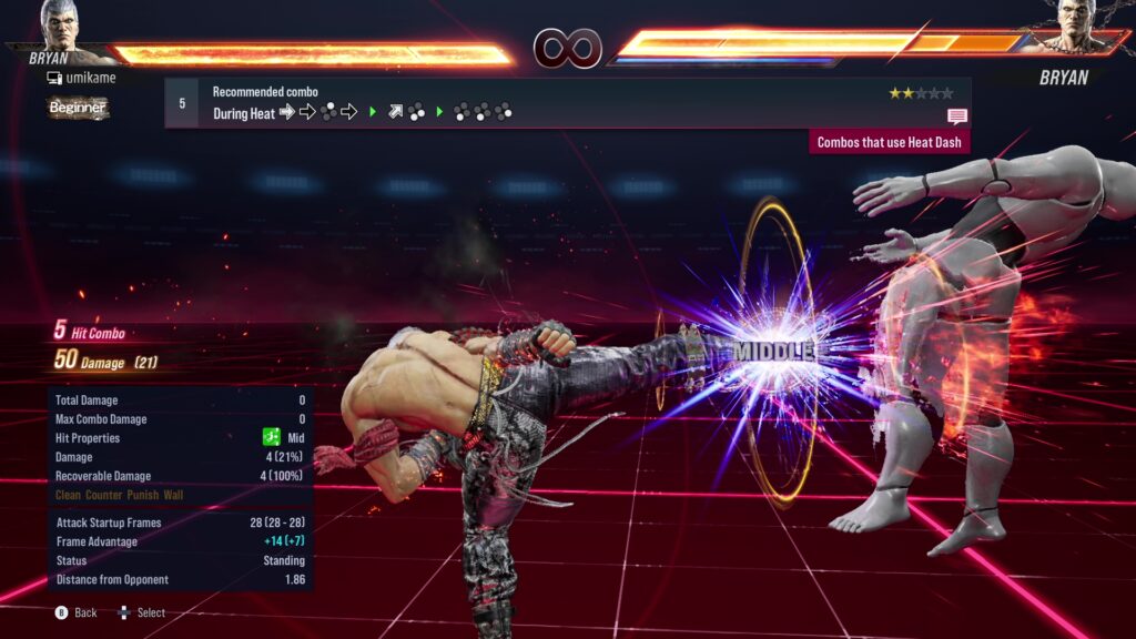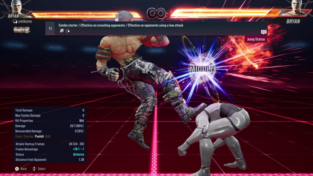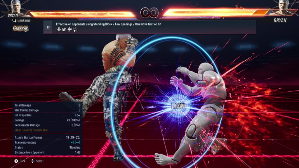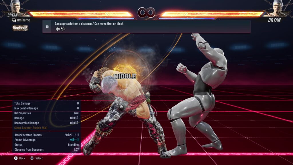 7.Will push opponent to the wall if they block / Effective on opponents using Standing Block