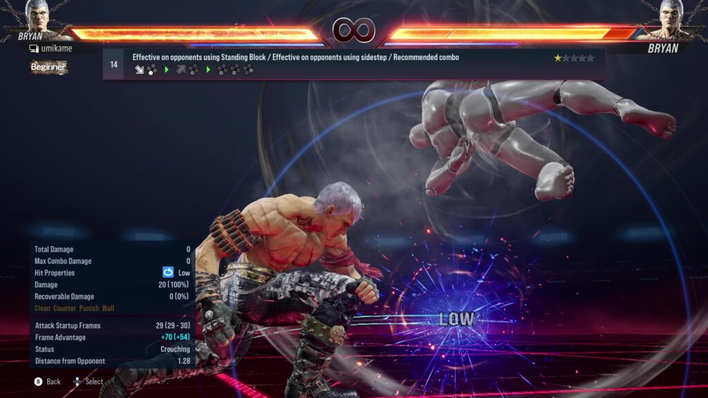 14.Effective on opponents using Standing Block / Effective on opponents using sidestep / Recommended combo