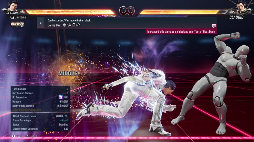 | During Heat b+4,2,~f | Increased chip damage on block as effect of Heat Dash |