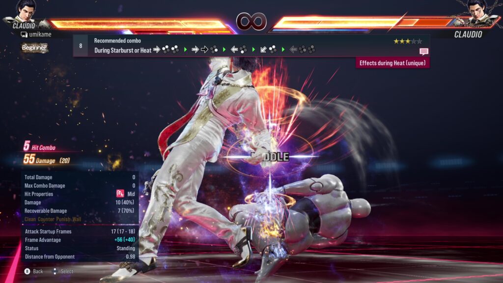 | During Starburst or Heat f+1+2,1+2→ff+4→b+3→db+1+2 T!→b+4,2 | Effects during Heat 〔unique〕 |