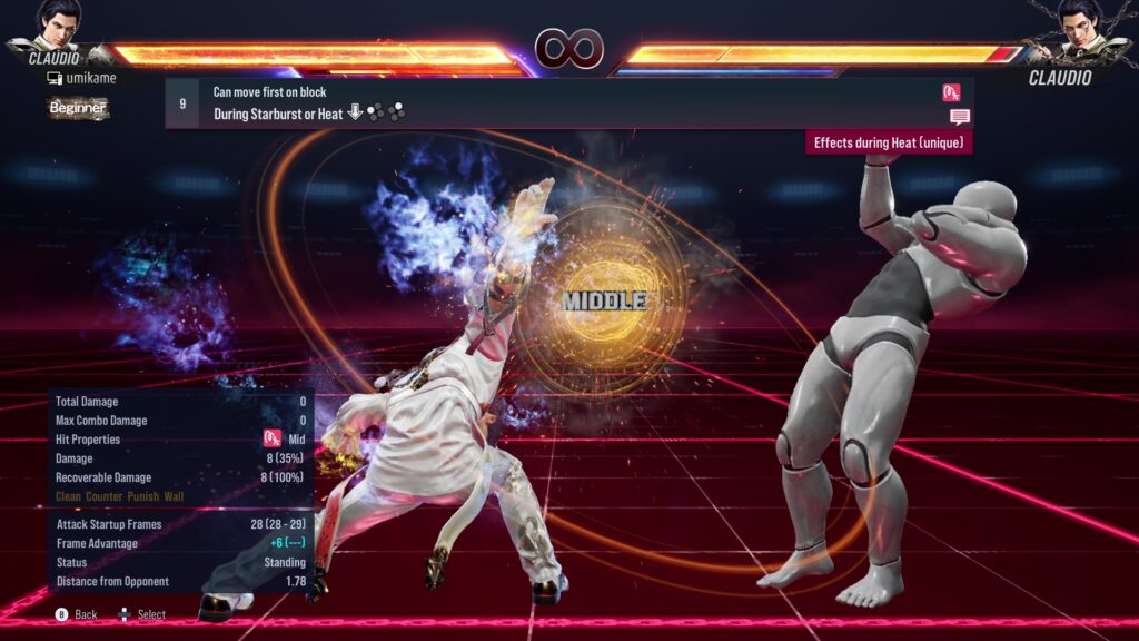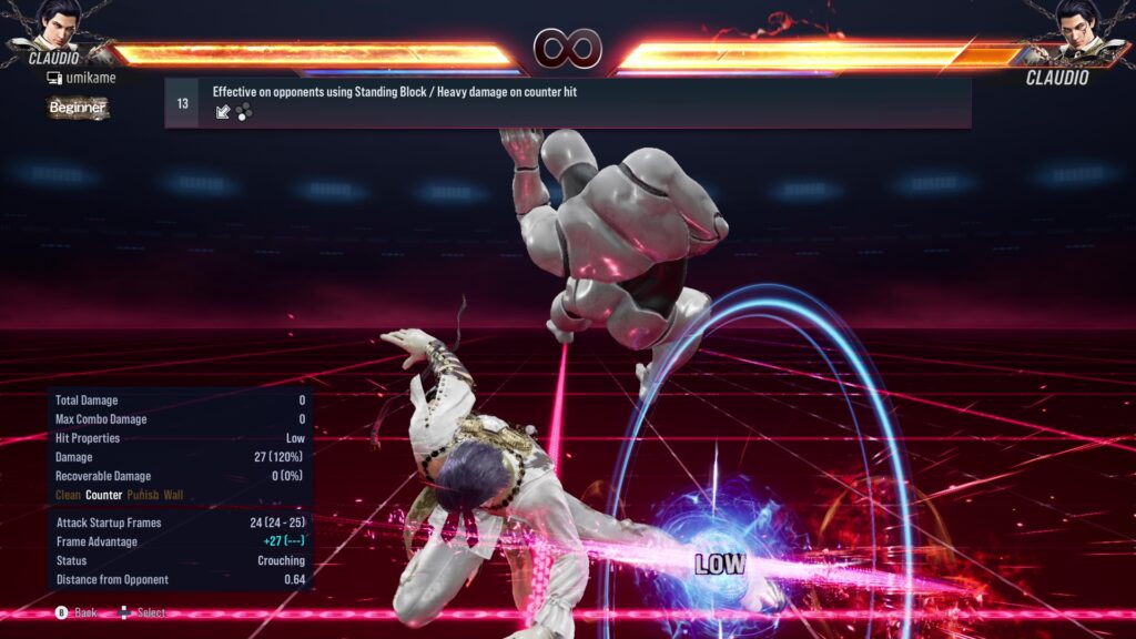 13.Effective on opponents using Standing Block / Heavy damage on counter hit
