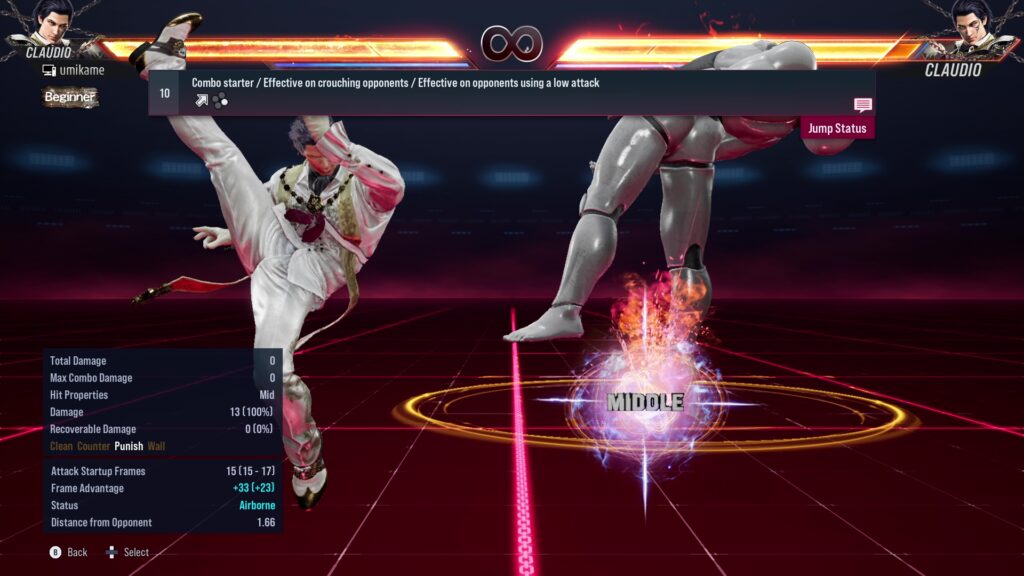 10.Combo starter / Effective on crouching opponents / Effective on opponents using a low attack