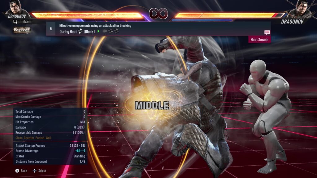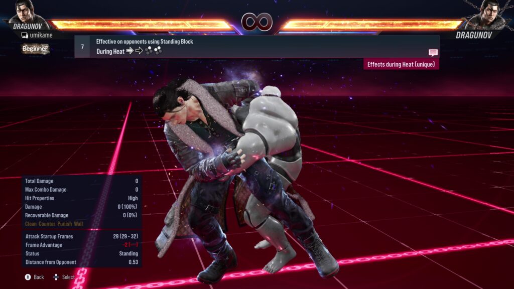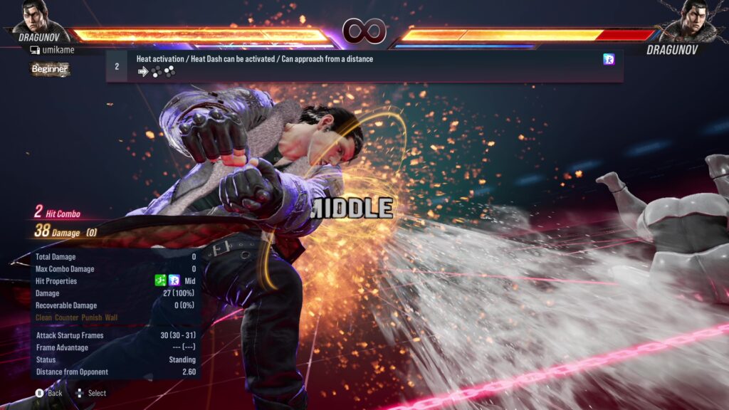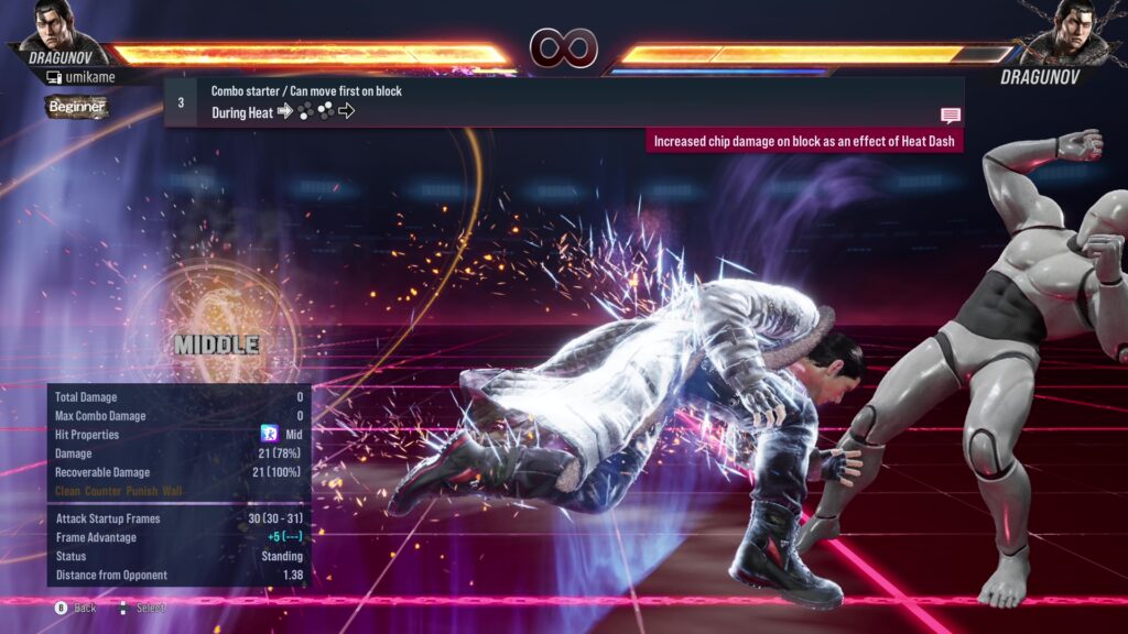 During Heat f+3,1+2,~f Increased chip damage on block as effect of Heat Dash