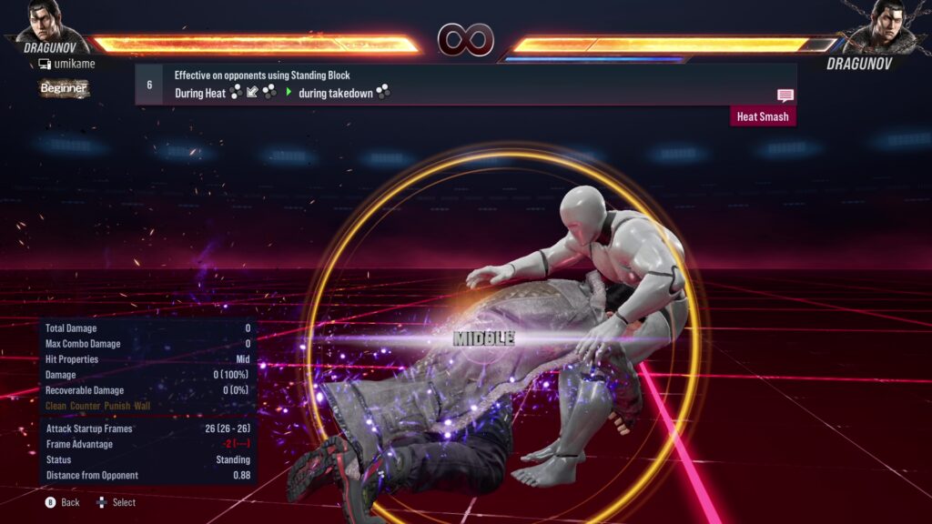 During Heat db+2+3→during tekedown 1+2 Heat Smash