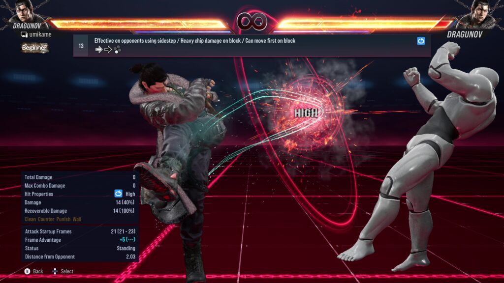 13.Effective on opponents using sidestep / Heavy chip damage / Can move first on block