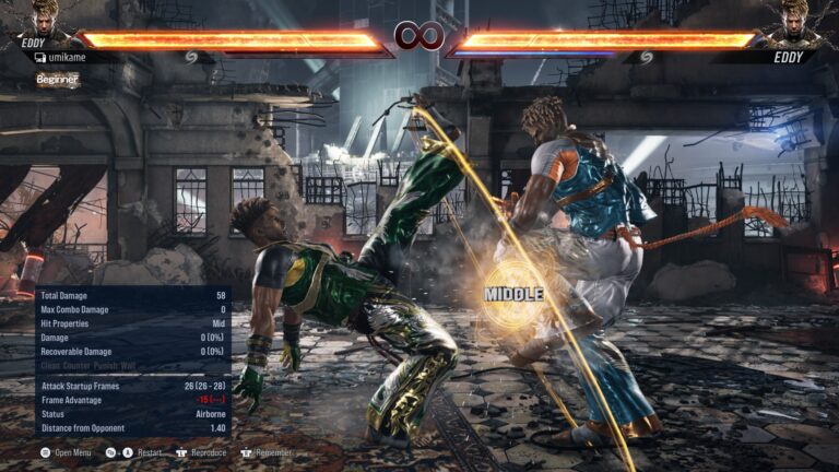 Frame data table for Eddy Gordo in Tekken 8. Includes startup, block, hit, and counter hit frame advantages for all moves. Useful for match-up knowledge and optimizing strategies.