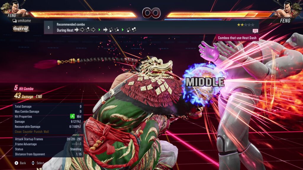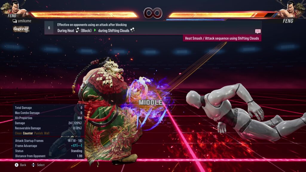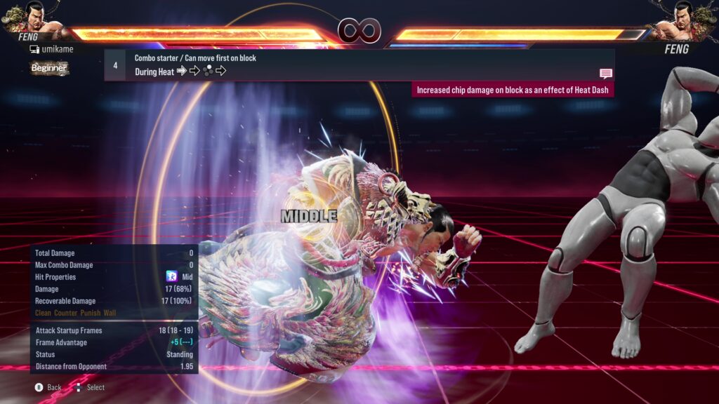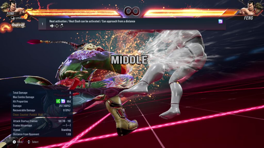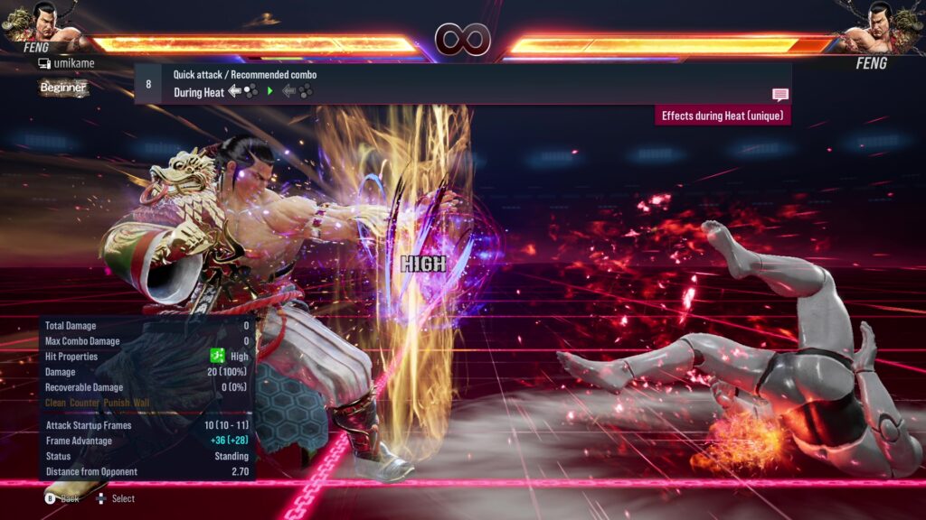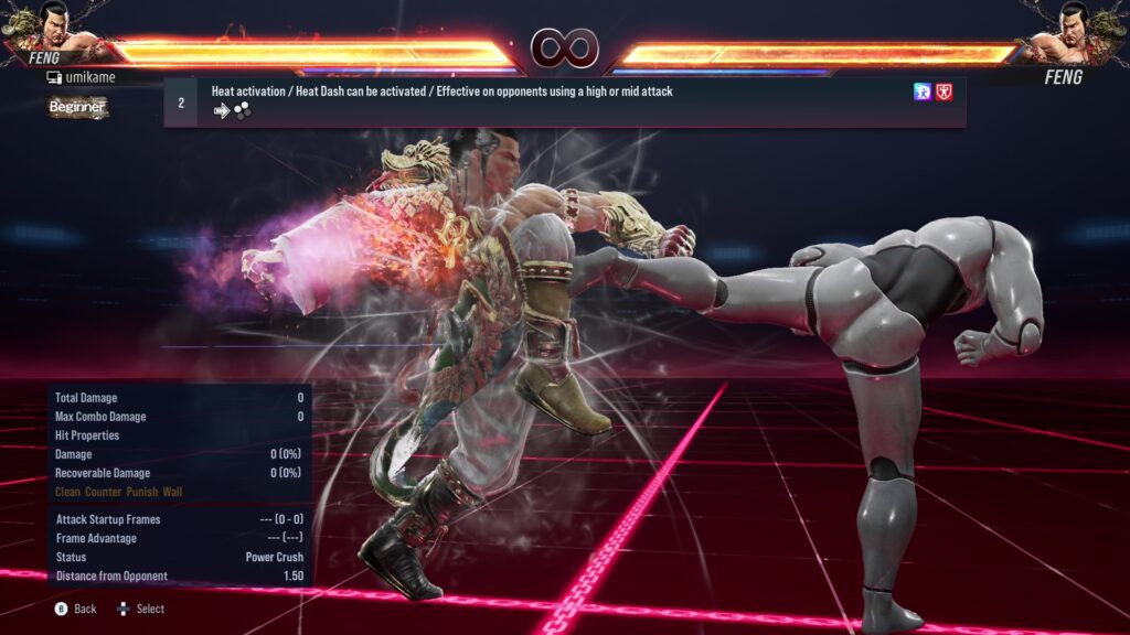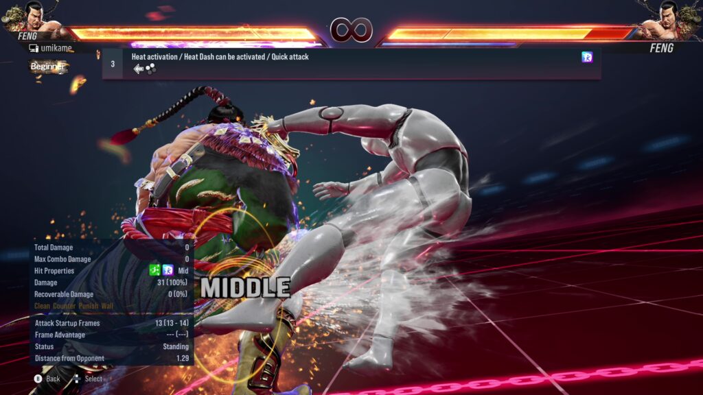 2.Heat activation / Heat Dash can be activated / Effective on opponents using a high or mid attack
