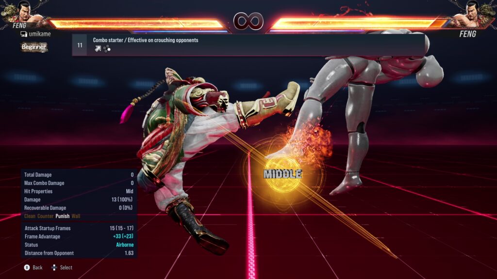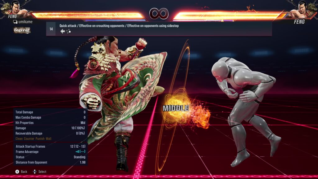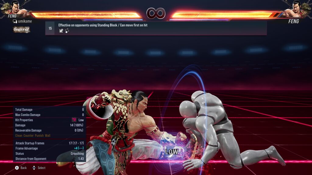 14.Quick attack / Effective on crouching opponents / Effective on opponents using sidestep