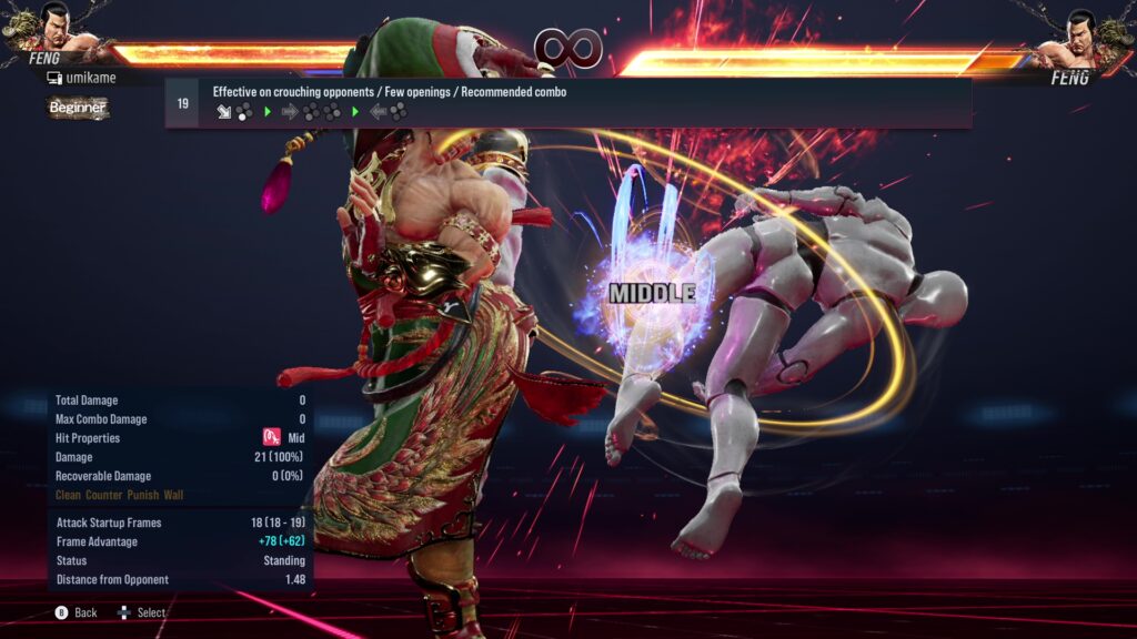 19.Effective on crouching opponents / Few openings / Recommended combo