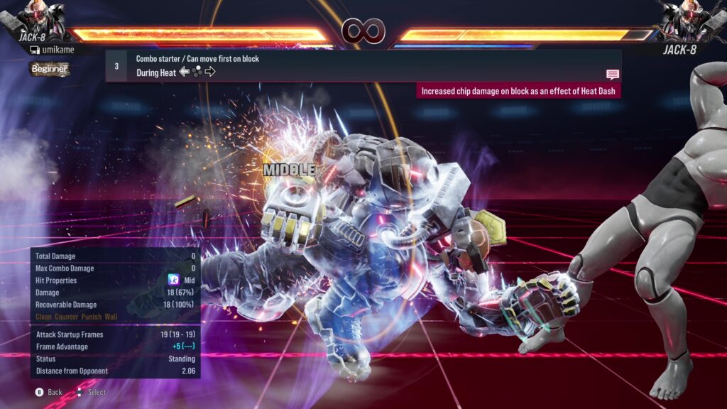 | During Heat b+2,~f | Increased chip damage on block as effect of Heat Dash |