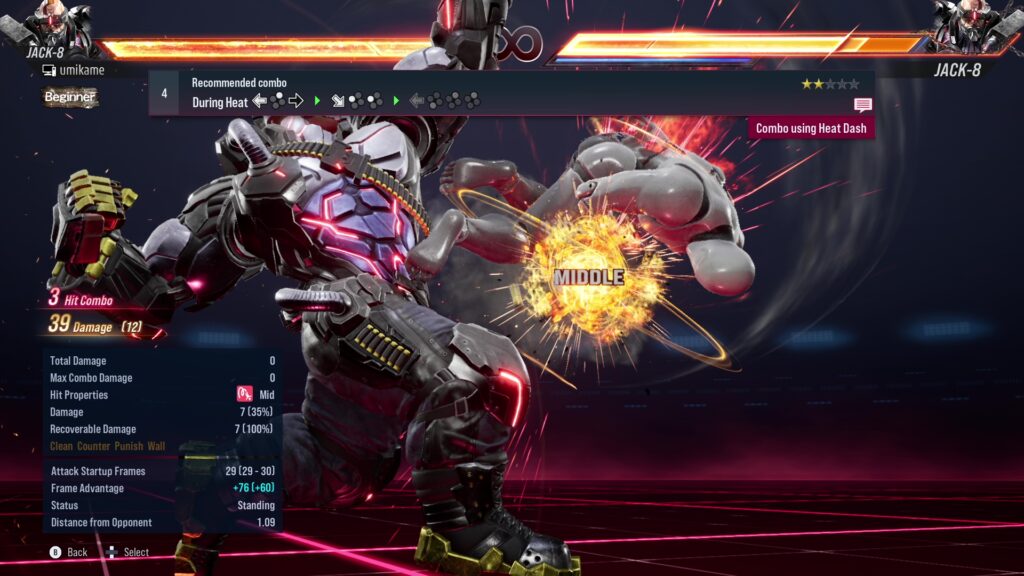 | During Heat b+2,~f(HD)→df+1,1 T!→b+3,2,2 | Combos that use Heat Dash |