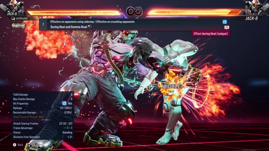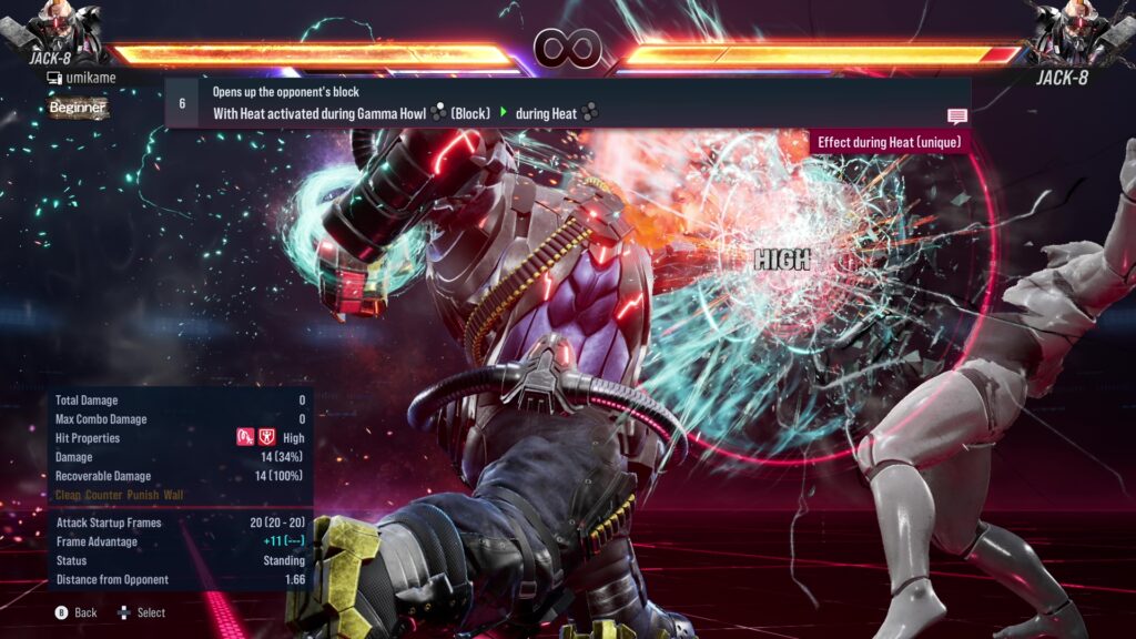 | f+3+4,~d〔Hit〕→during Gamma Howl 2+4 | Attack sequence using Gamma Howl |