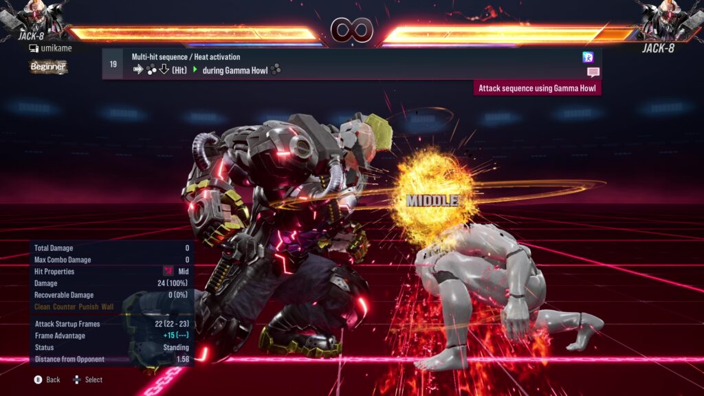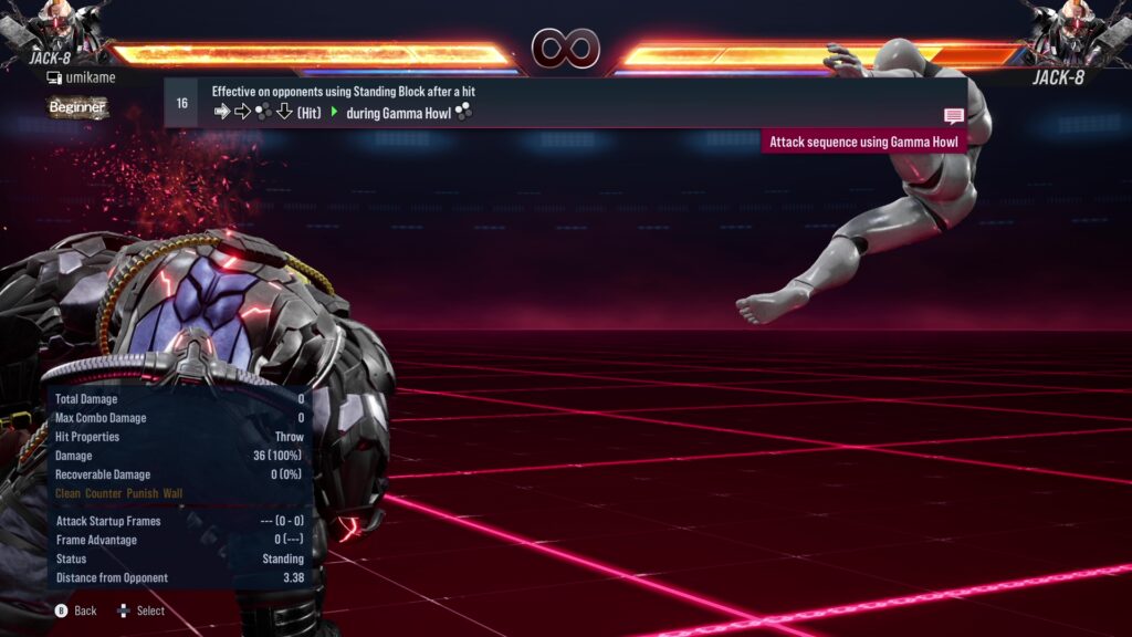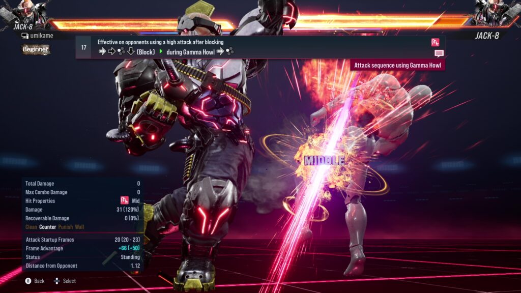 | uf+3〔Hit〕→during Gamma Howl f+2 | Attack sequence using Gamma Howl |