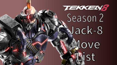 Command list for JACK-8 in Tekken 8. Covers all moves including basic attacks, throws, and Rage Arts with clear input notation. A helpful reference for both new and experienced players.