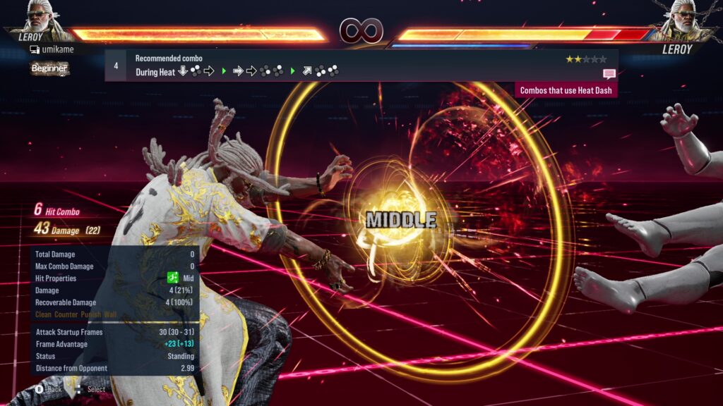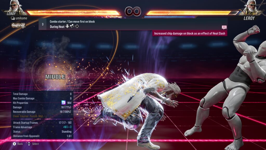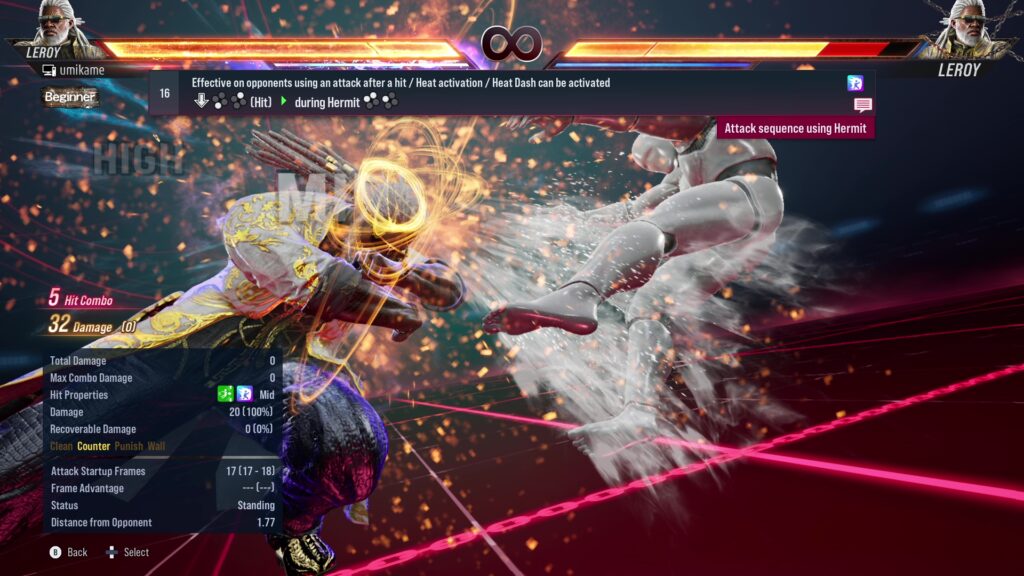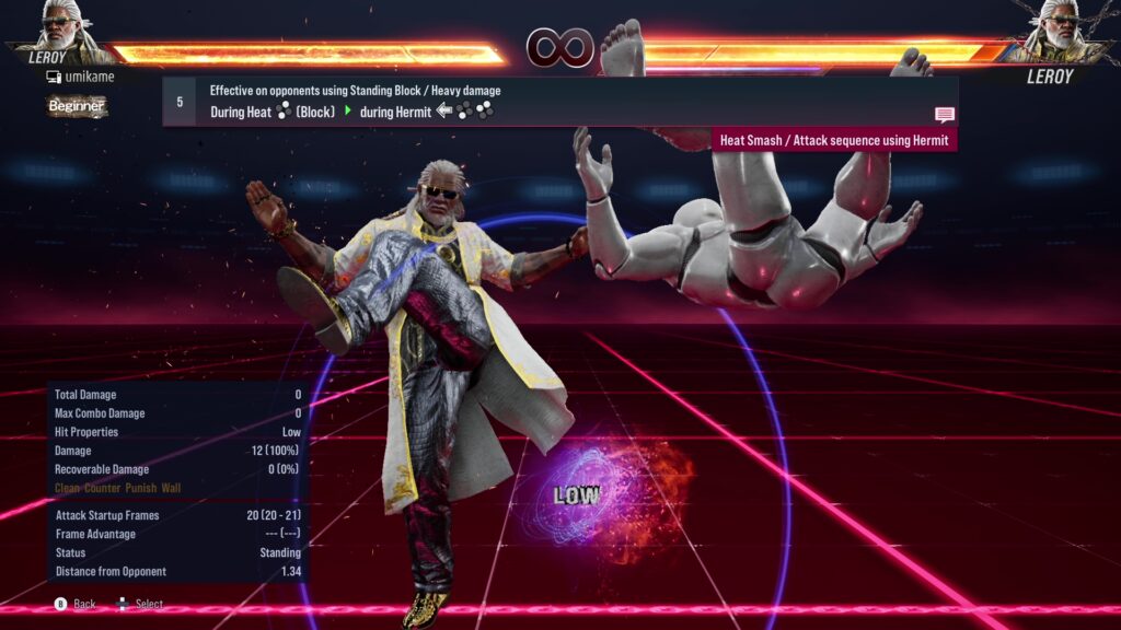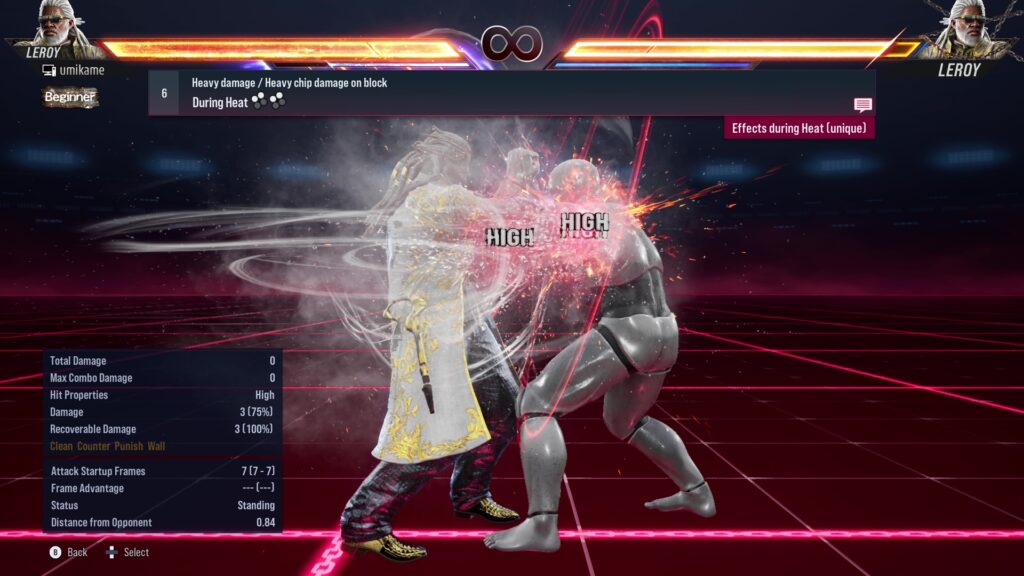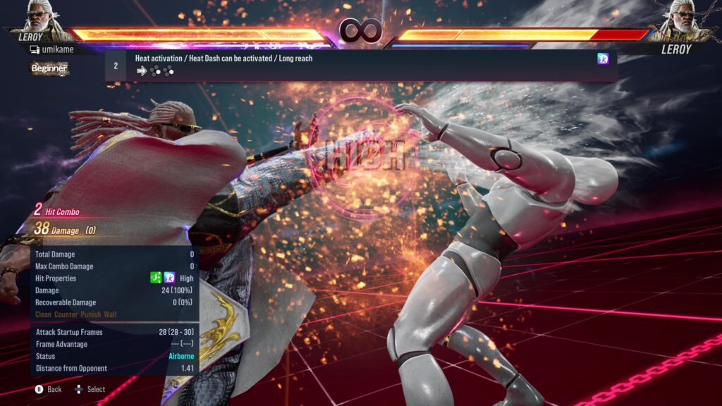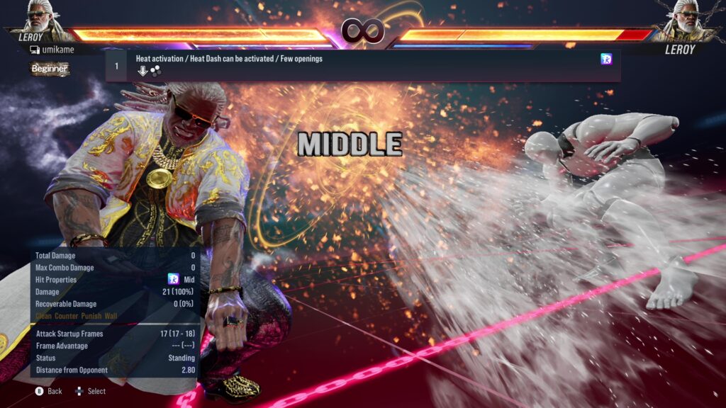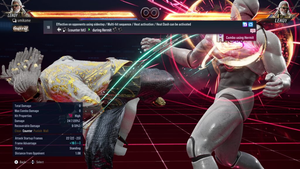 18.Effective on opponents using sidestep / Multi-hit sequence / Heat activation / Heat Dash can be activated