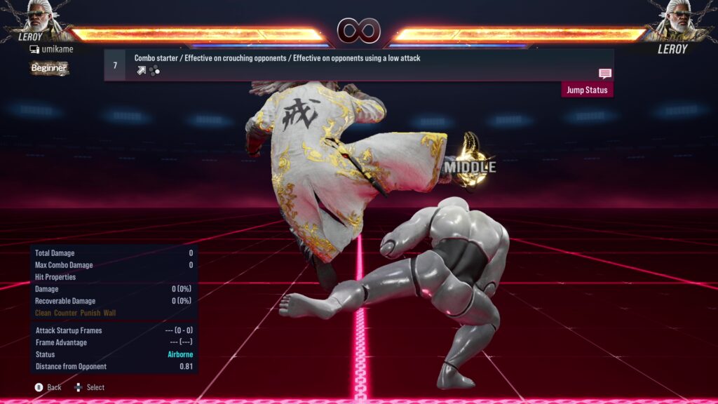 7.Combo starter / Effective on crouching opponents / Effective on opponents using a low attack