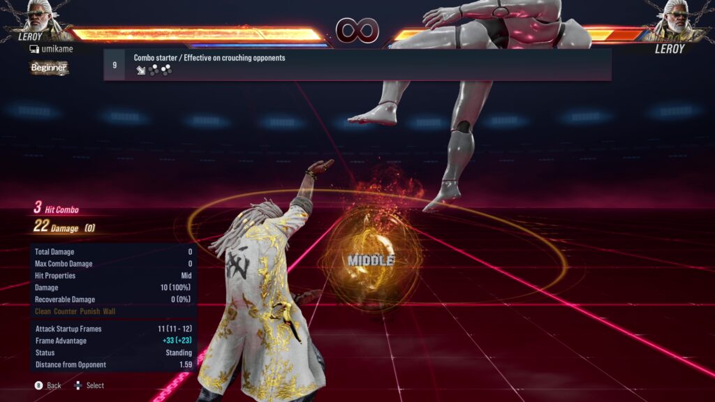 9.Combo starter / Effective on crouching opponents