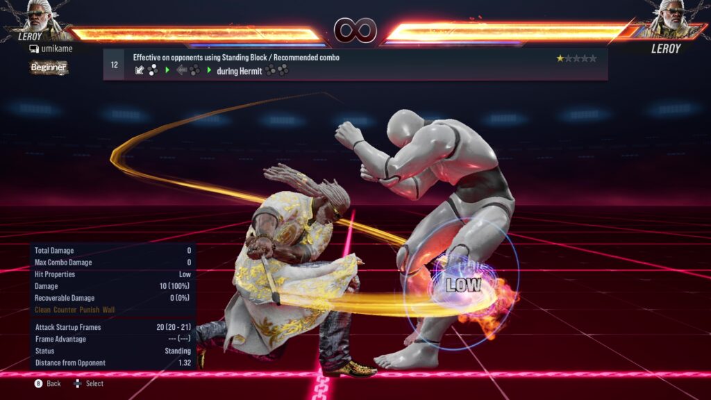 12.Effective on opponents using Standing Block / Recommended combo