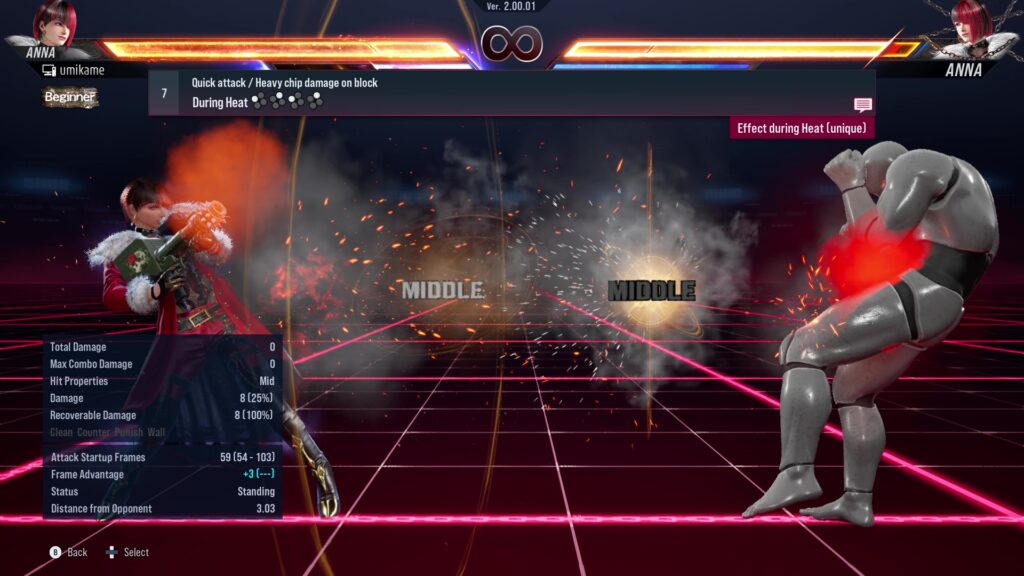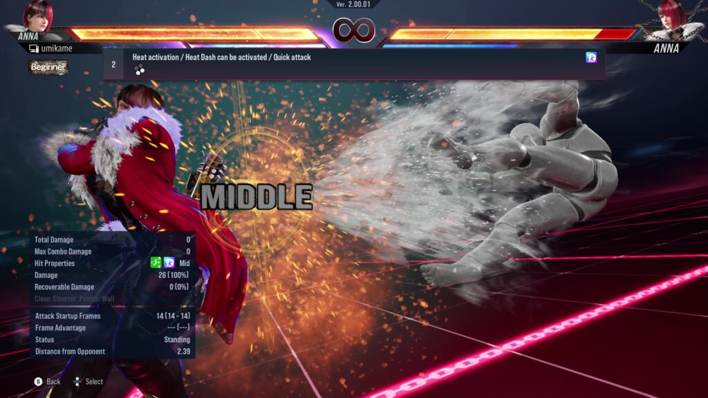 18.Effective on crouching opponent / Heat activation / Heat Dash can be activated