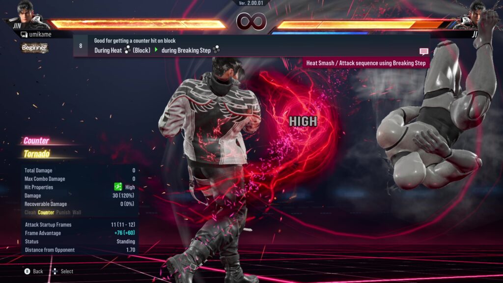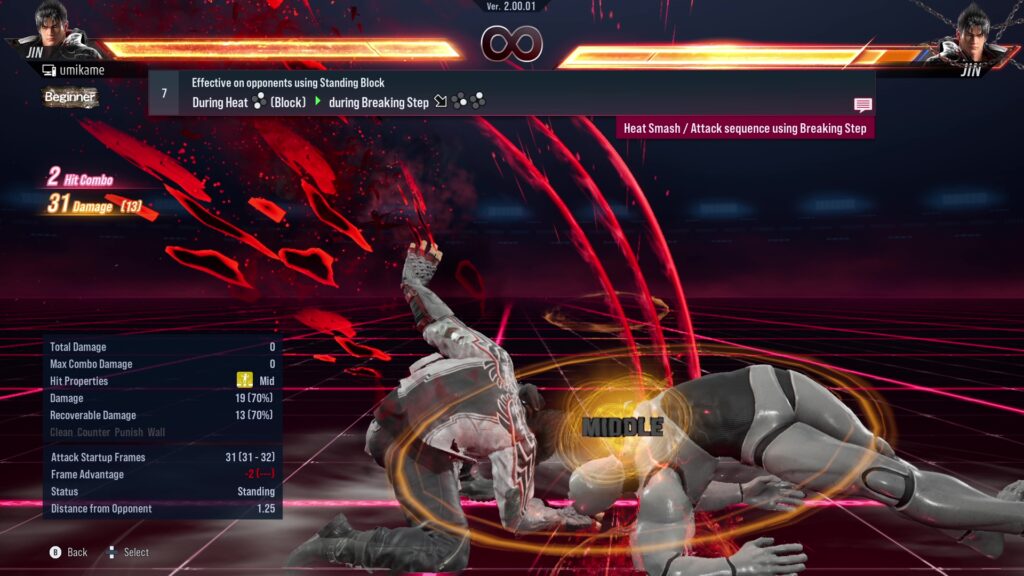 | During Heat 2+3[Block]→during Breaking Step 2 | Heat Smash / Attack sequence using Breaking Step |