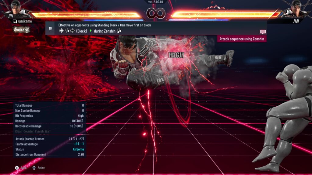 15.Effective on opponents using Standing Block / Heavy damage on counter hit