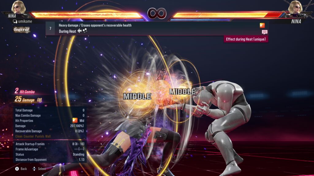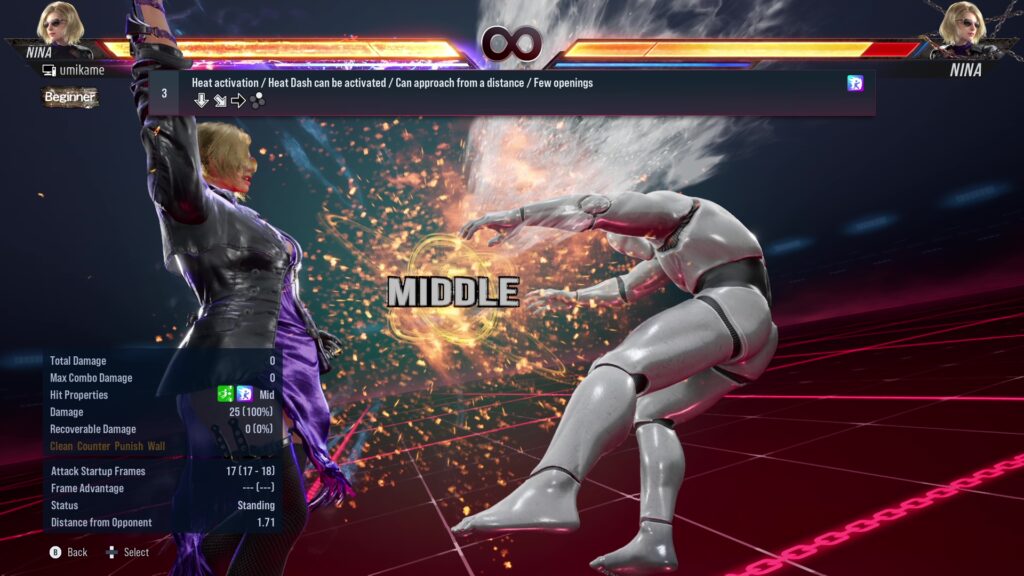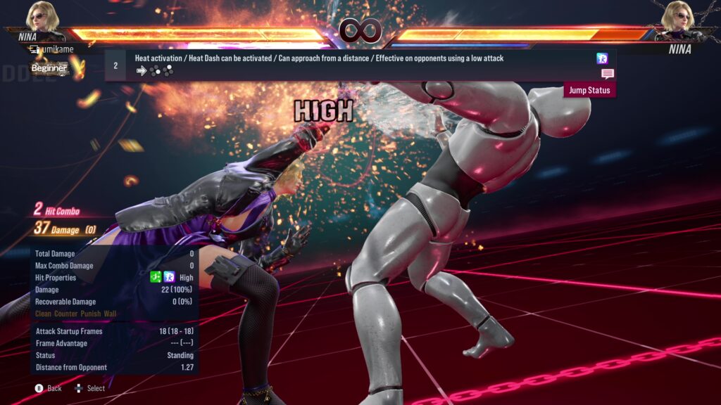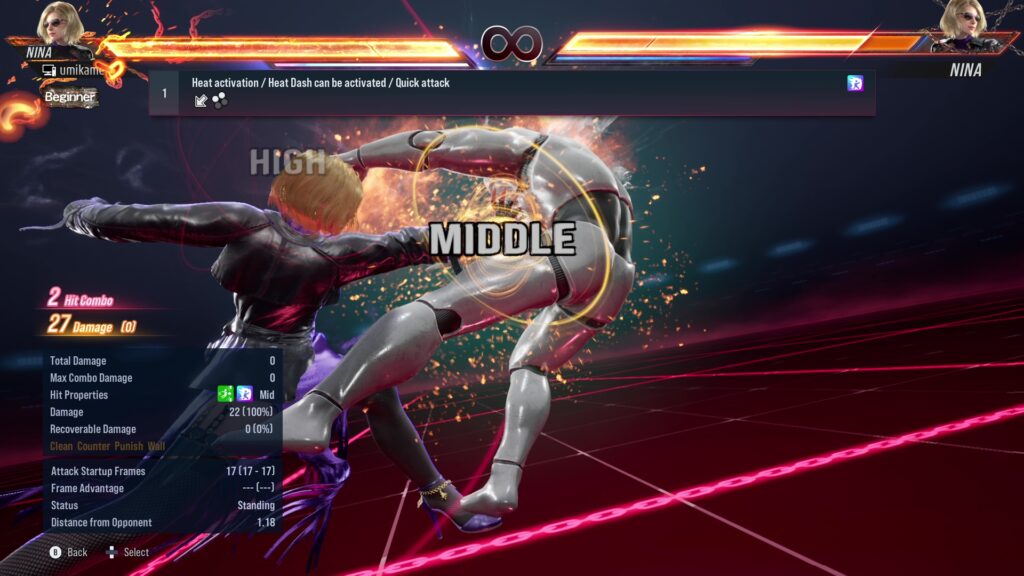 16.Heat activation / Heat Dash can be activated / Effective on opponents using a high or mid attack