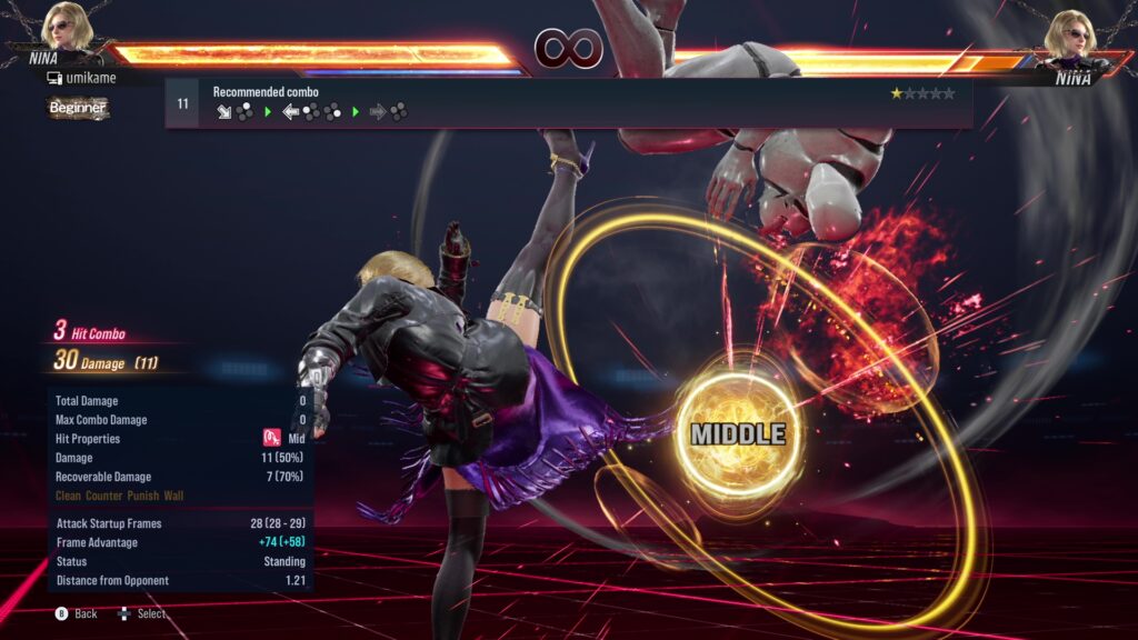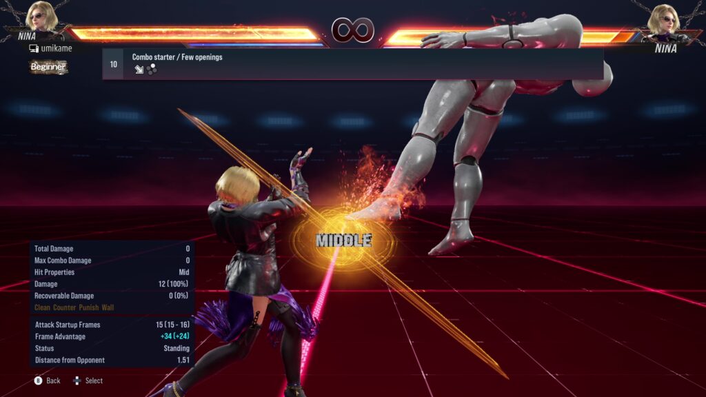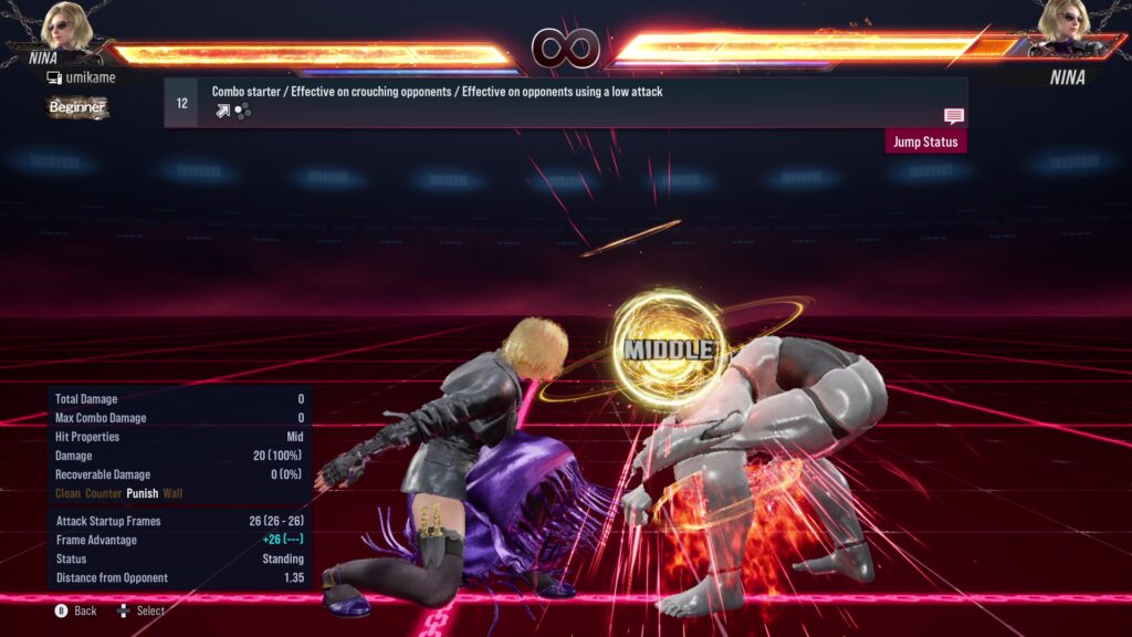 12.Combo starter / Effective on crouching opponents / Effective on opponents using a low attack
