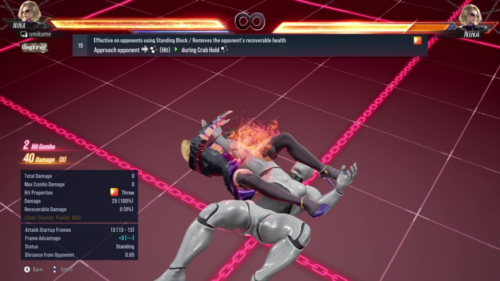 | Approach oppnent f+1+3〔Hit〕→during Crab Hold1 |