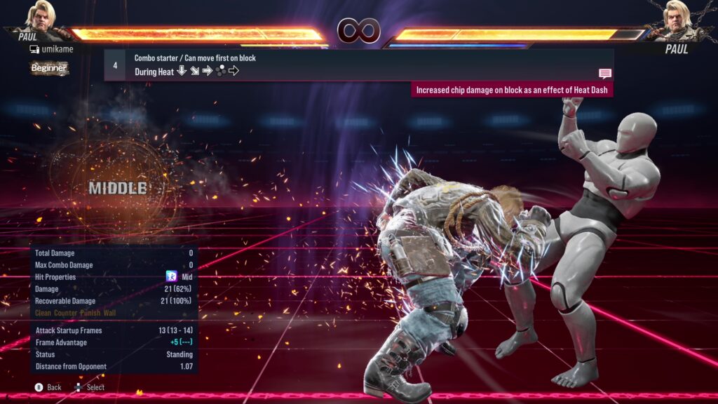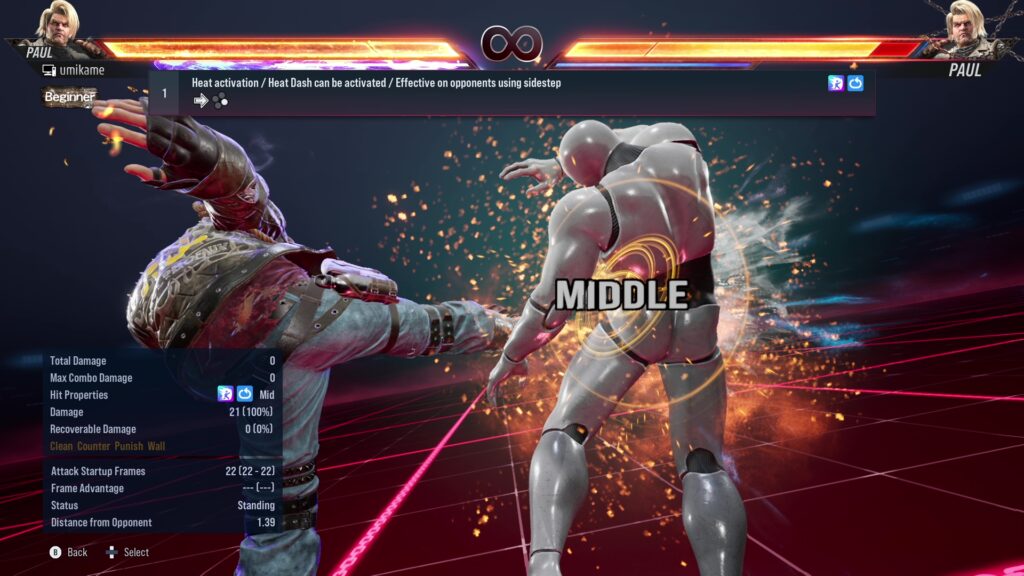 1.Heat activation / Heat Dash can be activated / Effective on opponents using sidestep