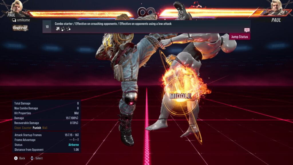 10.Combo starter / Effective on crouching opponents / Effective on opponents using a low attack