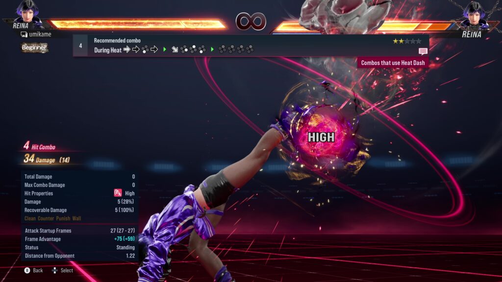 During Heat ff+3,~f(HD)→df+4,2,3 T!→2,2,2,2 Combos that use Heat Dash