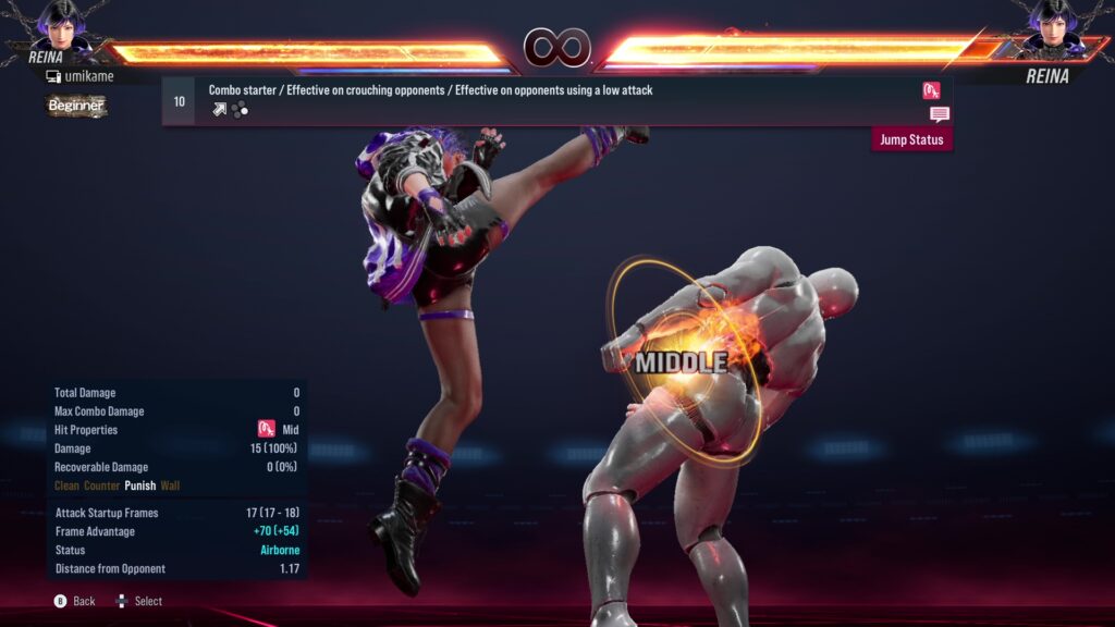 10.Combo starter / Effective on crouching opponents / Effective on opponents using a low attack