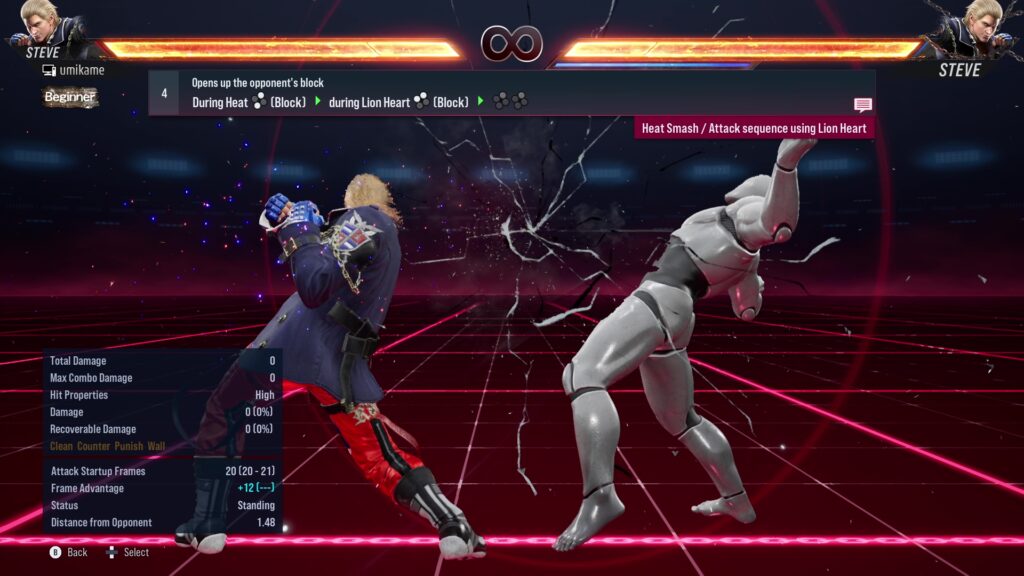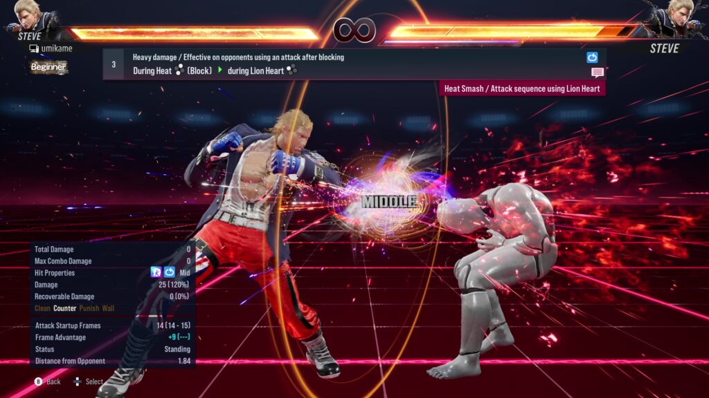 | During Heat 2+3〔Block〕→during Lion Heart 1 | Heat Smash / Attack sequence using Lion Heart |