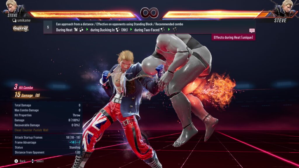 | During Heat df+3+4→during Ducking in WL〔Hit〕→during Two-faced 1→1+2 | Effects during Heat 〔unique〕 |
