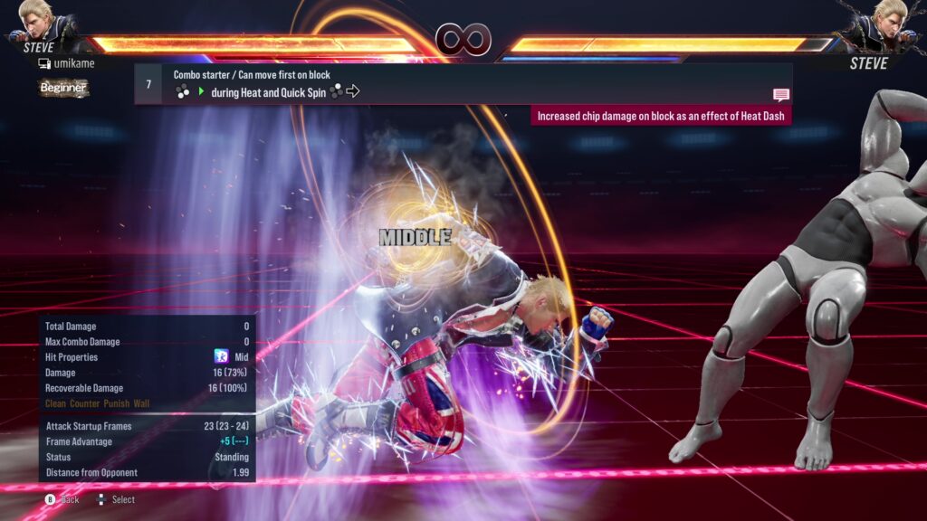 | 3+4→during Heat and Quick Spin 2,~f | Increased chip damage on block as effect of Heat Dash |