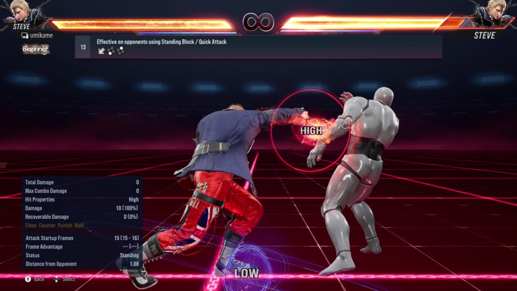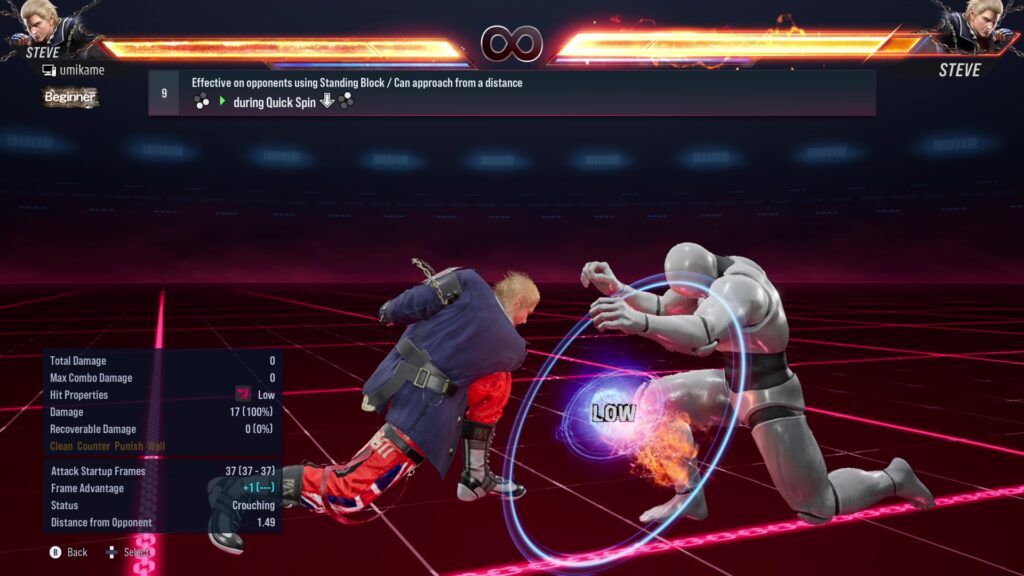 5.Can approach from a distance / Effective on opponents using Standing Block / Recommended combo