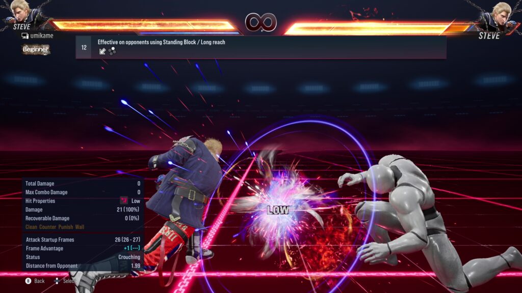11.Can approach from a distance / Effective on crouching opponents / Recommended combo