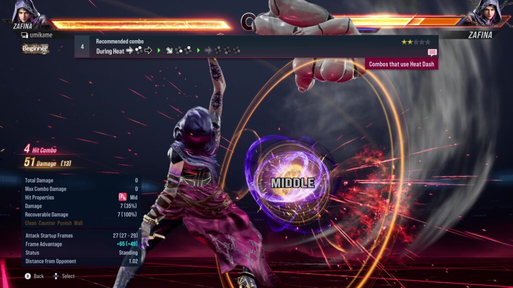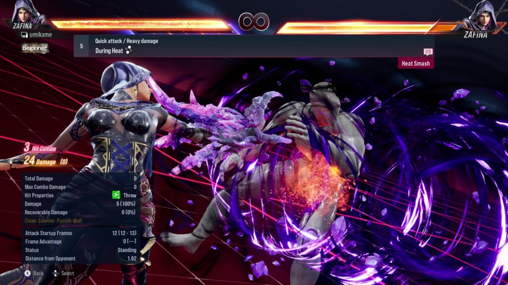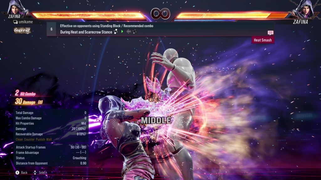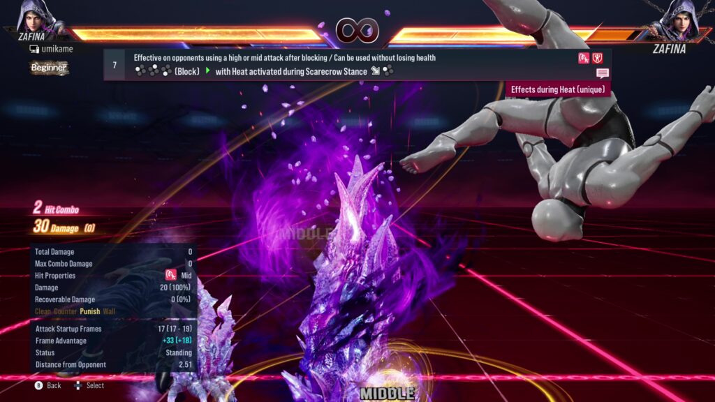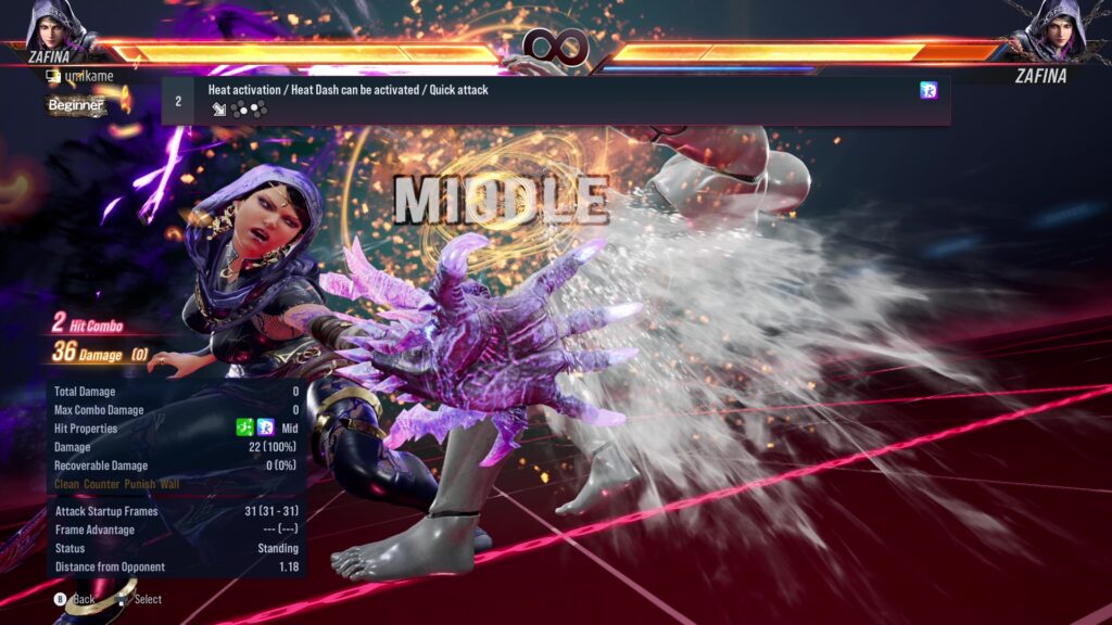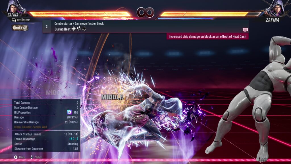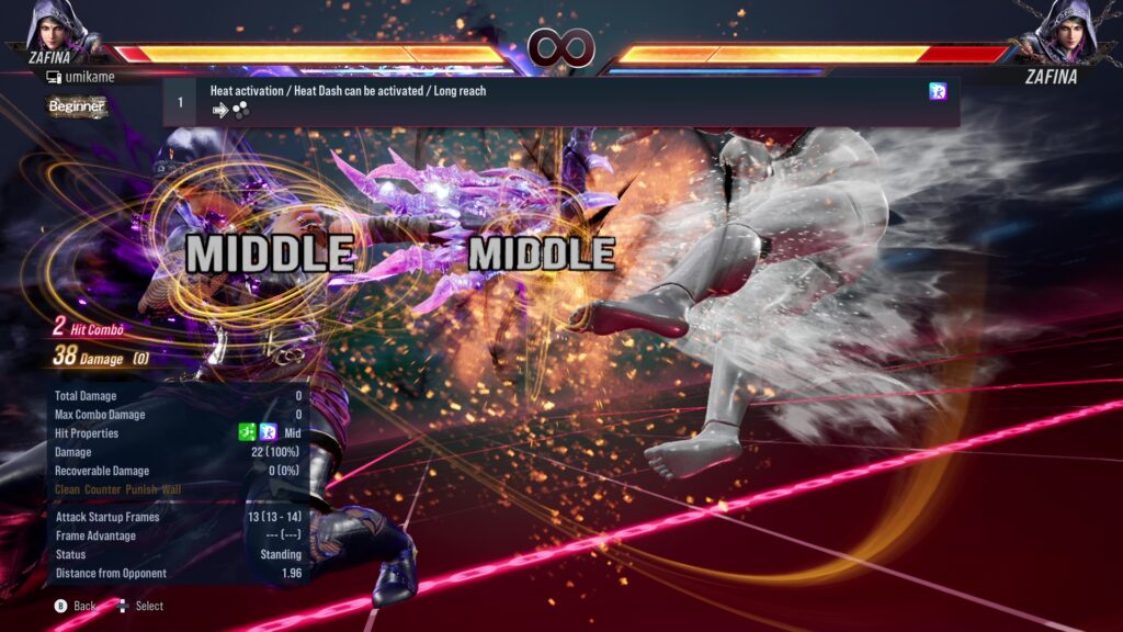 18.Effective on crouching opponents after blocking / Heat activation / Heat Dash can be activated