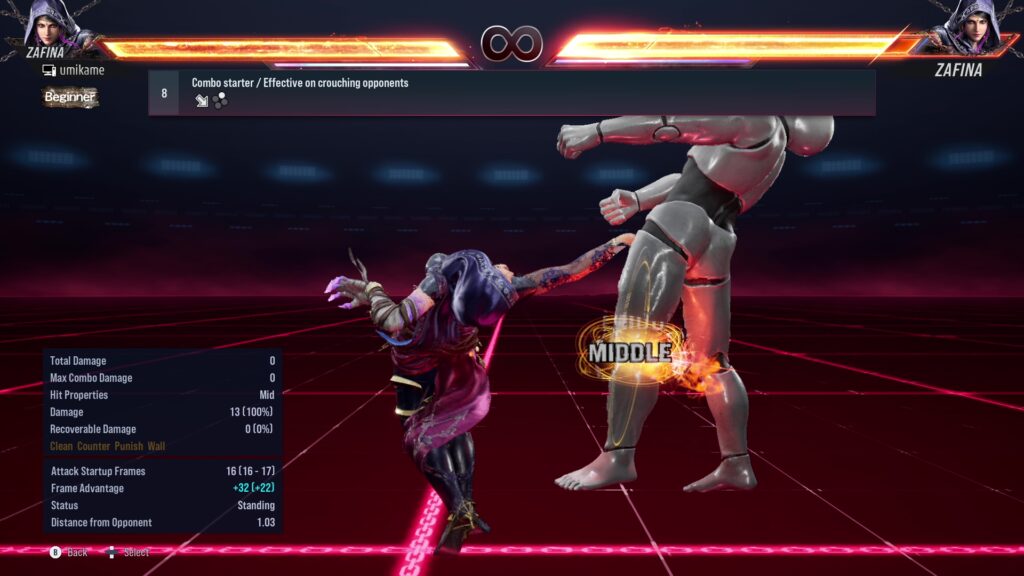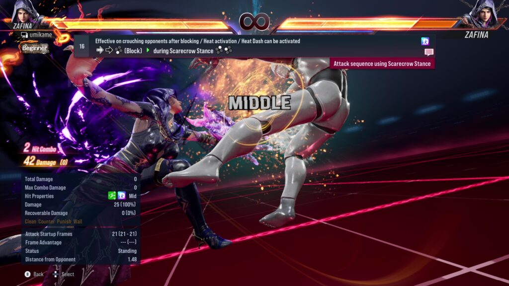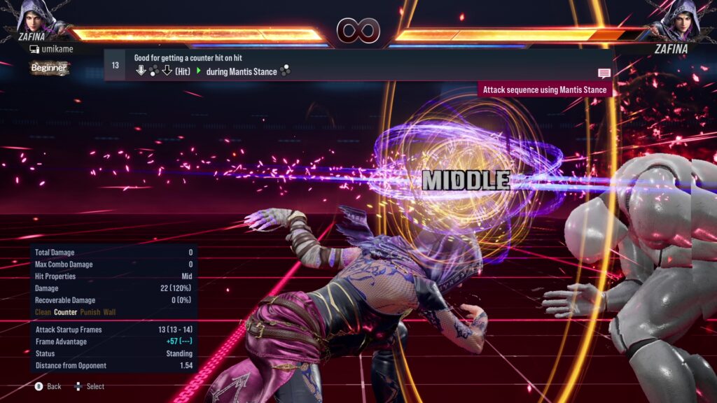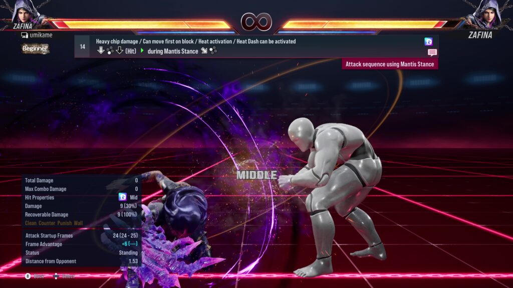 d+3〔Hit〕→during Mantis Stance df+1 Attack sequence using Mantis Stance