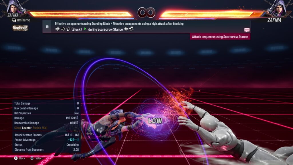 ff+3〔Block〕→during Scarecrow Stance b+1+2 Attack sequence using Scarecrow Stance