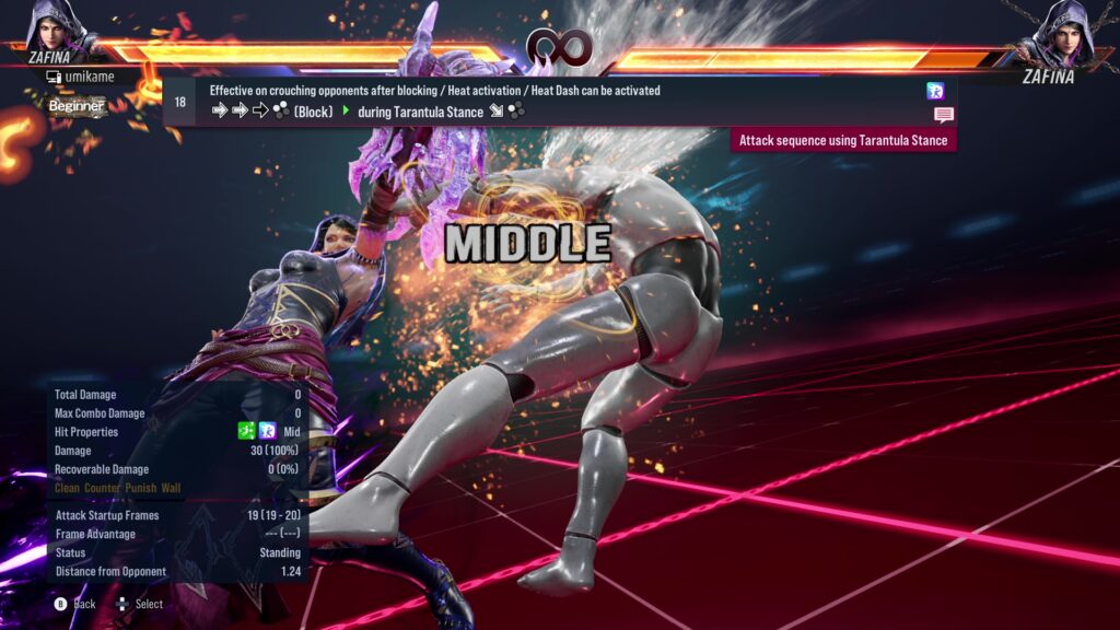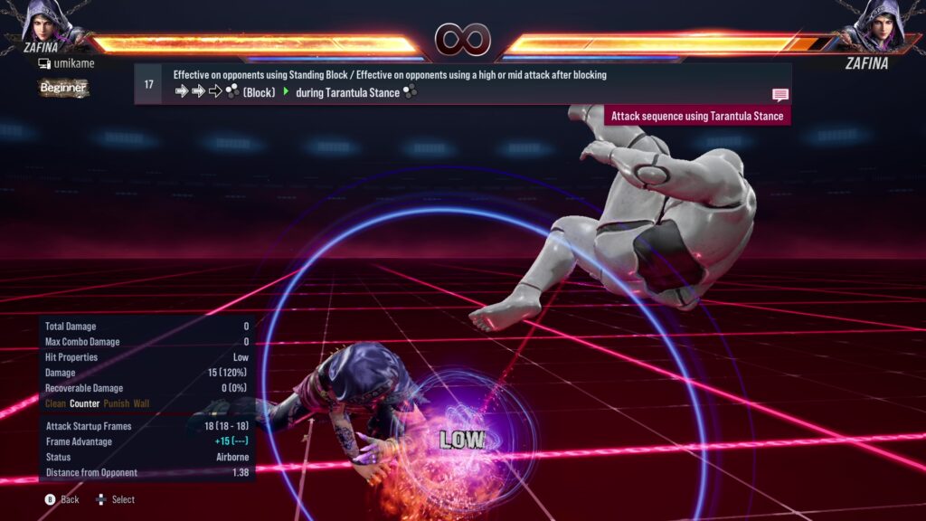 fff+1+2〔Block〕→during Tarantula Stance 1 Attack sequence using Tarantula Stance